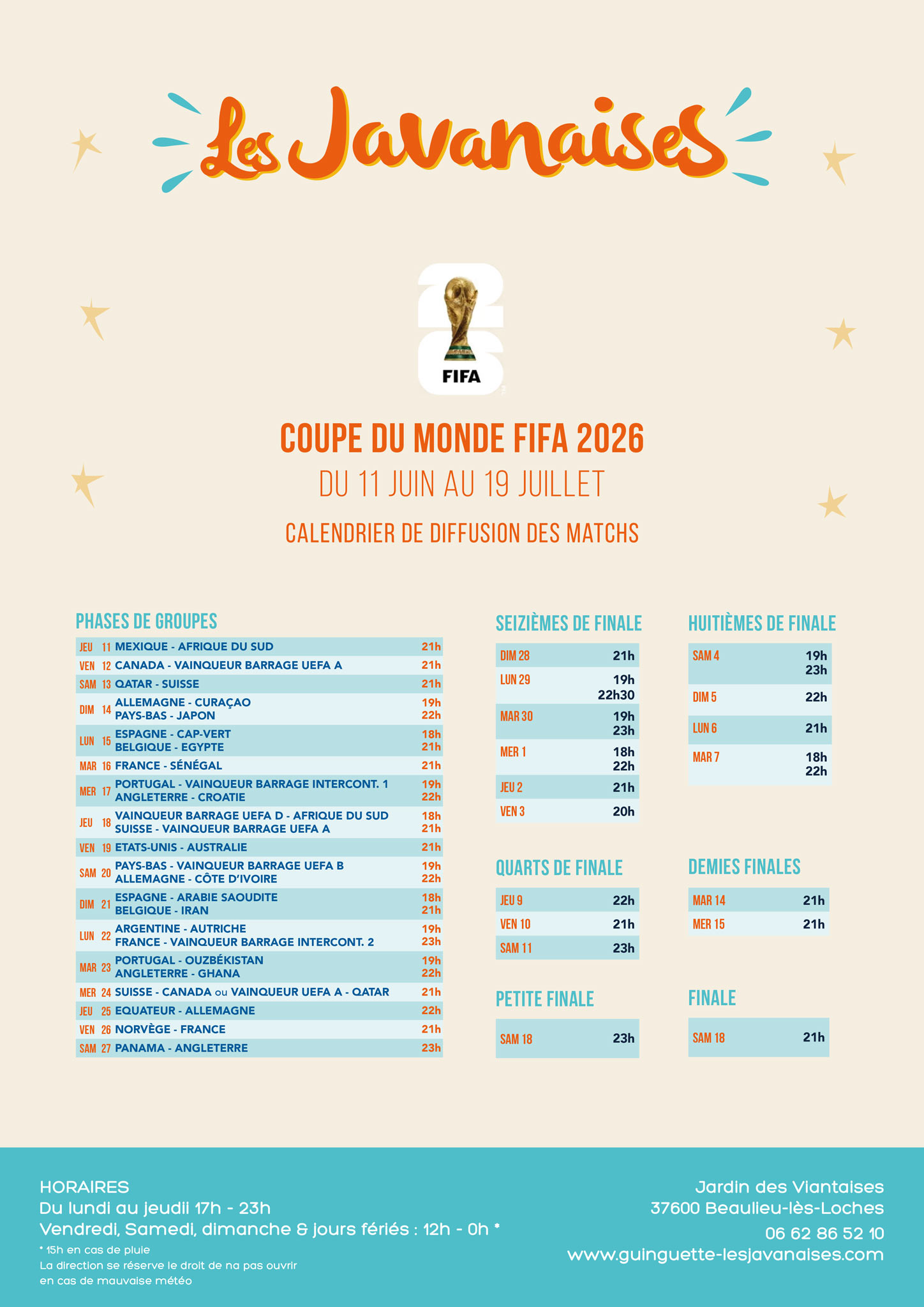 La direction se réserve le droit de ne pas ouvrir en cas de mauvaise météo.